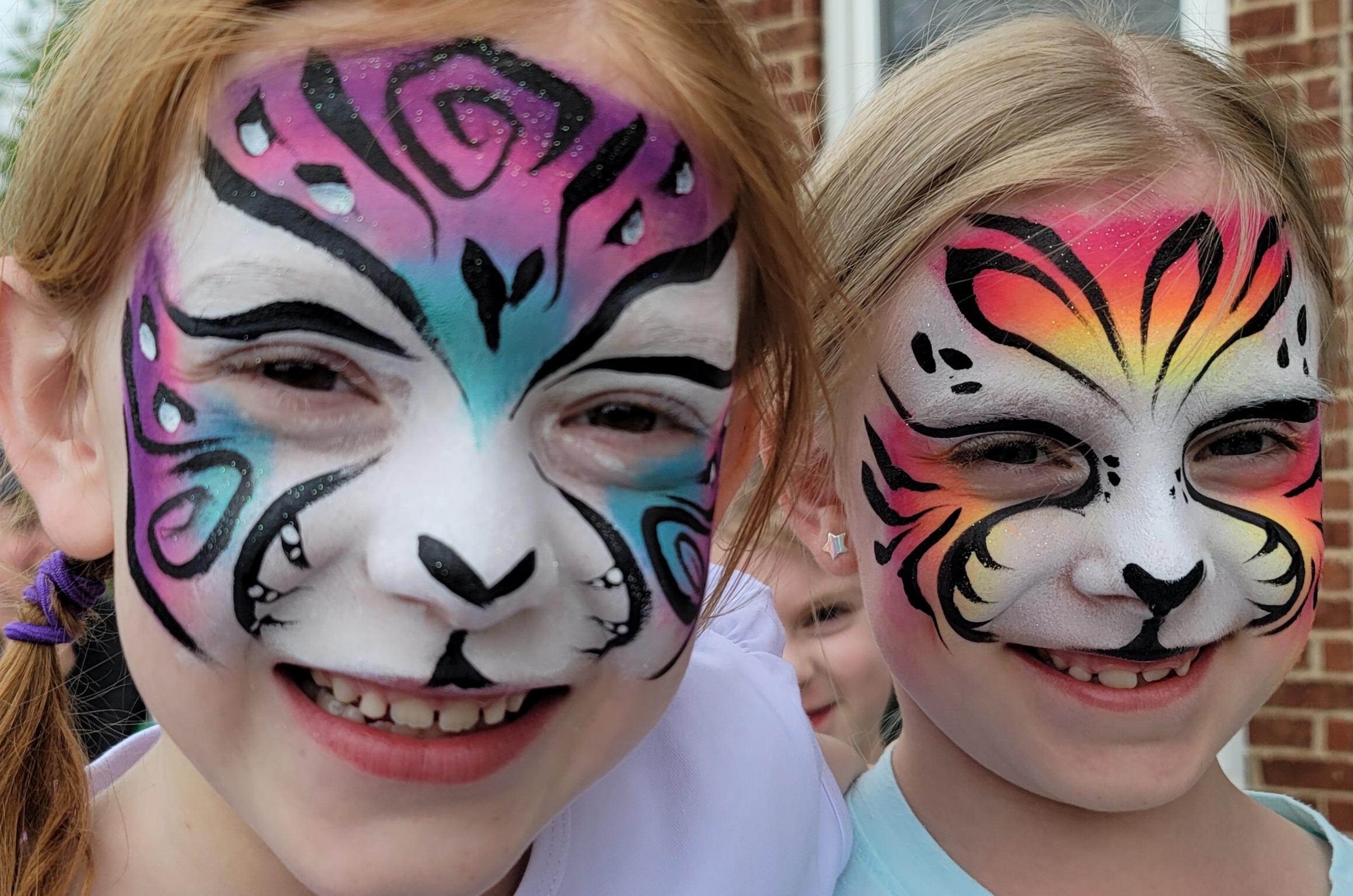 provides face painting outdoors for large groups and indoors for small groups. Masks are required for the un-vaccinated indoors. We feature special designs for the forehead made to accommodate your mask. Limited contact, Air brush, or traditional face painting. Hosts are responsible to provide social distancing. As restrictions are relaxed, we will accommodate those guidelines.