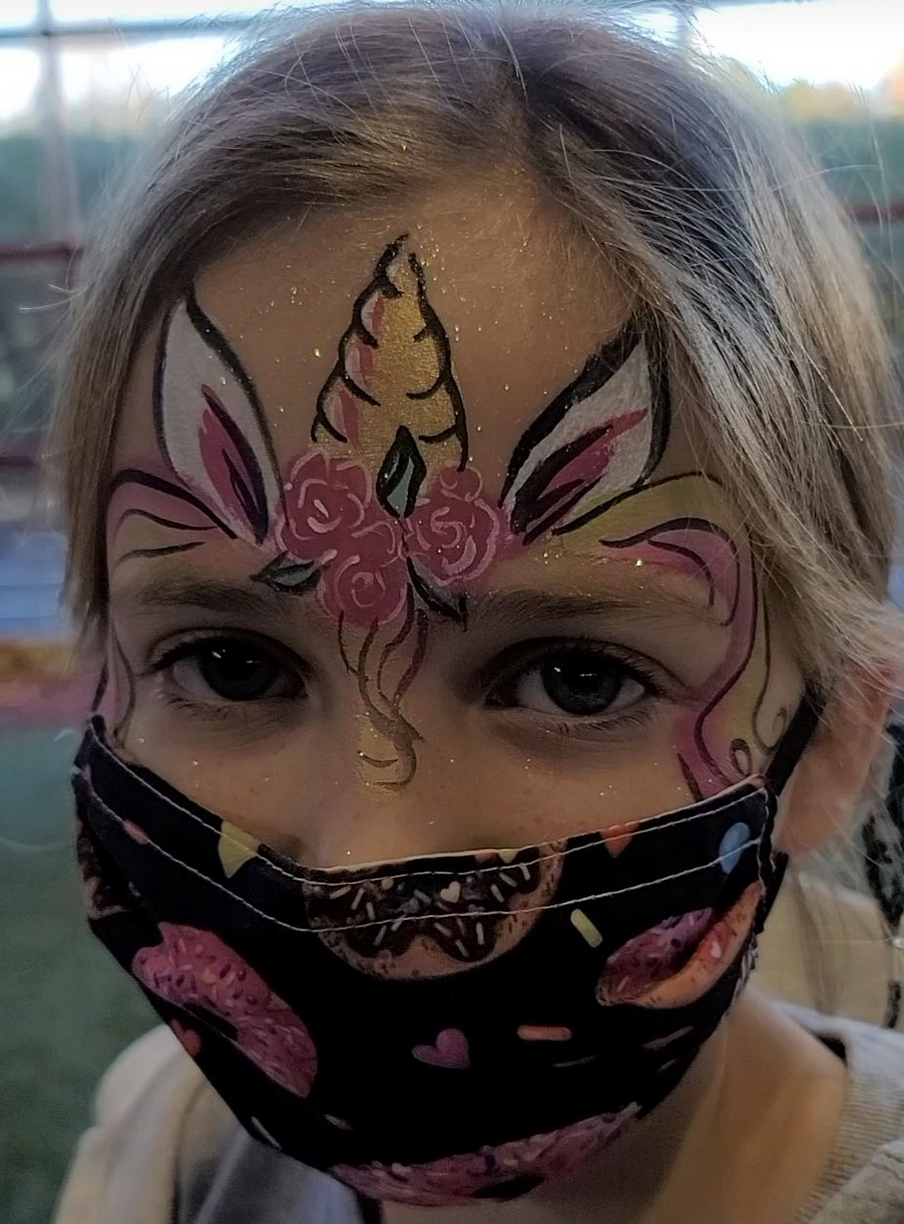 provides face painting outdoors for large groups and indoors for groups of less than 10 quests. Masks are required indoors. We feature special designs for the forehead made to accommodate your mask. Limited contact, Air brush, or traditional face painting. Hosts are responsible to provide social distancing. As restrictions are relaxed, we will accommodate those guidelines.